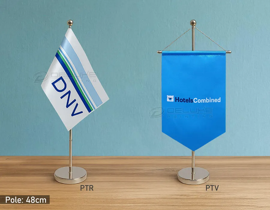 At Golden Signage, we produce custom table flags using premium materials and high-quality printing to ensure vibrant colors and crisp designs. Whether you need a national flag, a company logo, or a unique custom design, we tailor size, fabric, and stand type to your needs. Options include single or double-sided printing, gold fringes, and weighted bases for stable display. Designed to stay vibrant and durable, Golden Signage’s table flags are perfect for everyday office use or special events, combining strength, style, and professional appeal.
